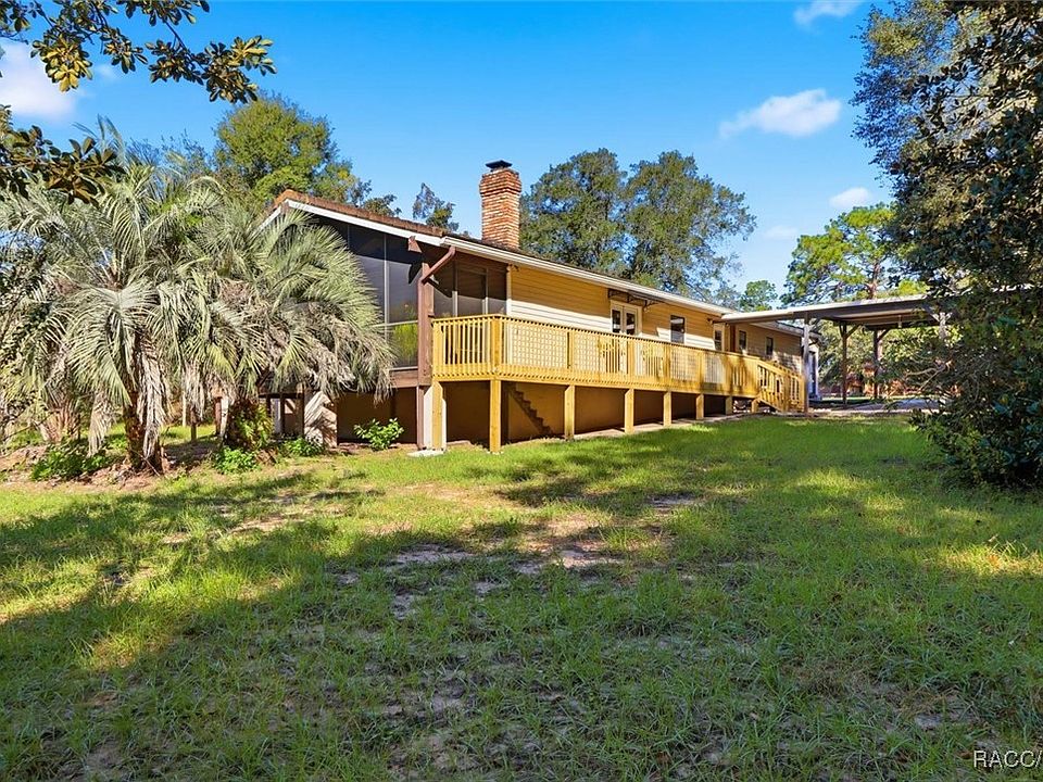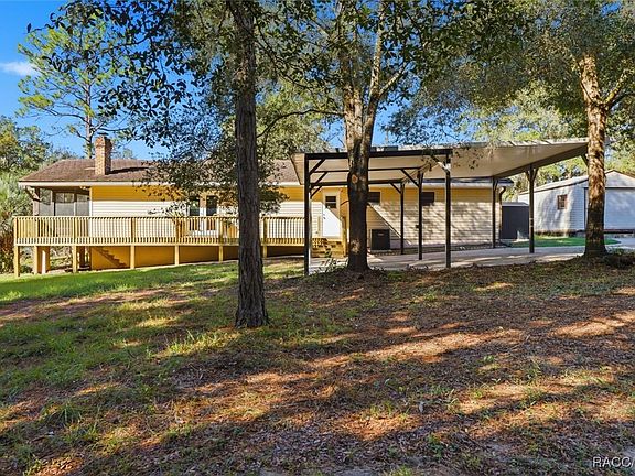 Beautiful setting this cabin style 3 bedroom 2 bath home overlooks. Relax on your elevated screened in porch, watching the deer stroll thru beneath. Wood beams grace the vaulted ceiling of the great room, and the stone fireplace lends a cozy feel. The home sits in over an acre, on a dead end street. The 46 mile Withlacoochee Bike Trail, multiple lakes, & the Floral City Park are all around the corner. There’s a metal carport and metal shed with roll up door. The new wood deck and new AC are just bonuses. Laundry room features new water heater too! The home sits behind the home on the street.