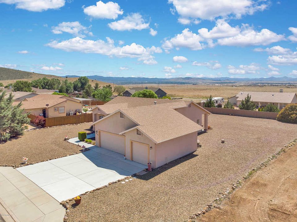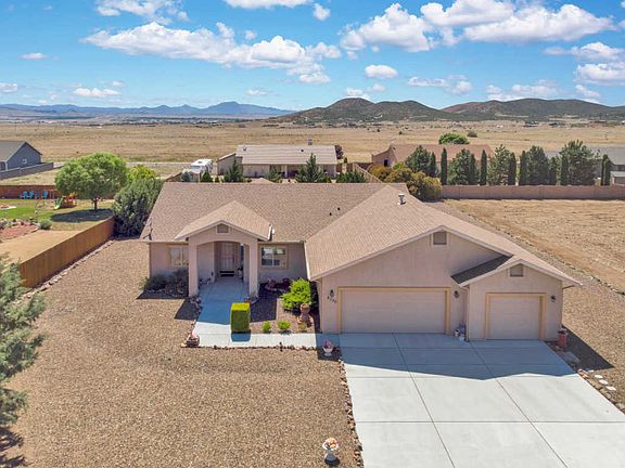 Well cared for 4 bedroom 2 bath home with 3 car garage in Mingus West with views of Mingus Mountain, the Bradshaws and Granite Mountain! Upon entering this home you'll enjoy the vaulted ceilings and large family room with laminate flooring! Attached is the den which could be used as a 4th bedroom. The kitchen and dining nook feature tile flooring, exterior patio access, wood cabinets and white appliances creating a bright and open atmosphere. The owners suite also boasts of vaulted ceilings, a dual vanity bath with separate tub and shower, walk in closet and water closet. Two additional guest bedrooms and a full guest bath provide amenities for everyone! This lovely home is situated on a spacious .45 acre level lot that has been fully landscaped with gravel for easy maintenance!