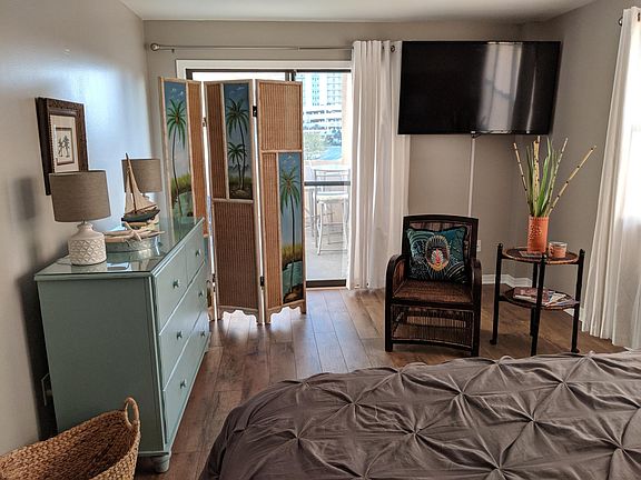 Fully furnished and ALL BILLS PAID including electric and internet. Flexible lease term. Newly renovated condo in St Thomas Square. 5-minute walk to the beach, amusement parks, shopping, and dining. Watch all the action from the huge balcony. St Thomas is a well-maintained lowrise complex that is easy to navigate. We have a pool, shuffleboard, tennis, boat dock with electricity, and a fish cleaning station. All new appliances with an oversized fridge. Washer and dryer inside. High-speed WiFi and big TVs. Apple TV in BR, Roku TV in LR. Flexible.