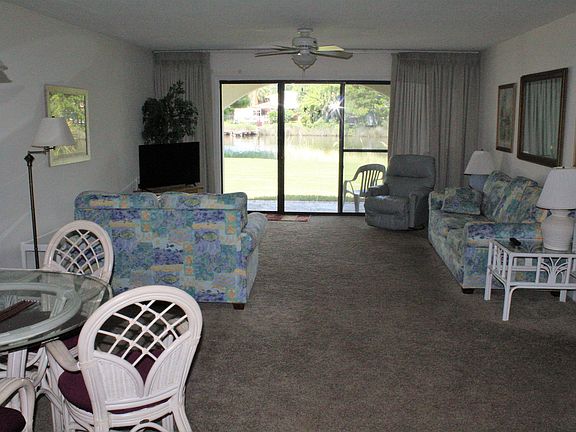 'CURRENTLY UNDER CONTRACT, SELLER ACCEPTING BACKUP OFFERS' BRING YOUR BOAT...Short ride to the Gulf!! Beautiful spacious Ground Floor 1500 Square Foot Condo with exceptional view overlooking the Lagoon is move in ready. This units has an updated kitchen, newer carpet, newer furniture, and has been freshly painted. Master Bedroom Suite with Luxury Bath and Walk-In Closet overlooks the spectacular lagoon view as well as the kitchen, dining area and family room. The location is desirable with the Beautiful Gulf of Mexico across Thomas Drive obtaining easy public access. LOCATION LOCATION....Also, within walking distance to restaurants, shops and entertainment. Come and See!!!! Measurements are approximate, buyers please measure.