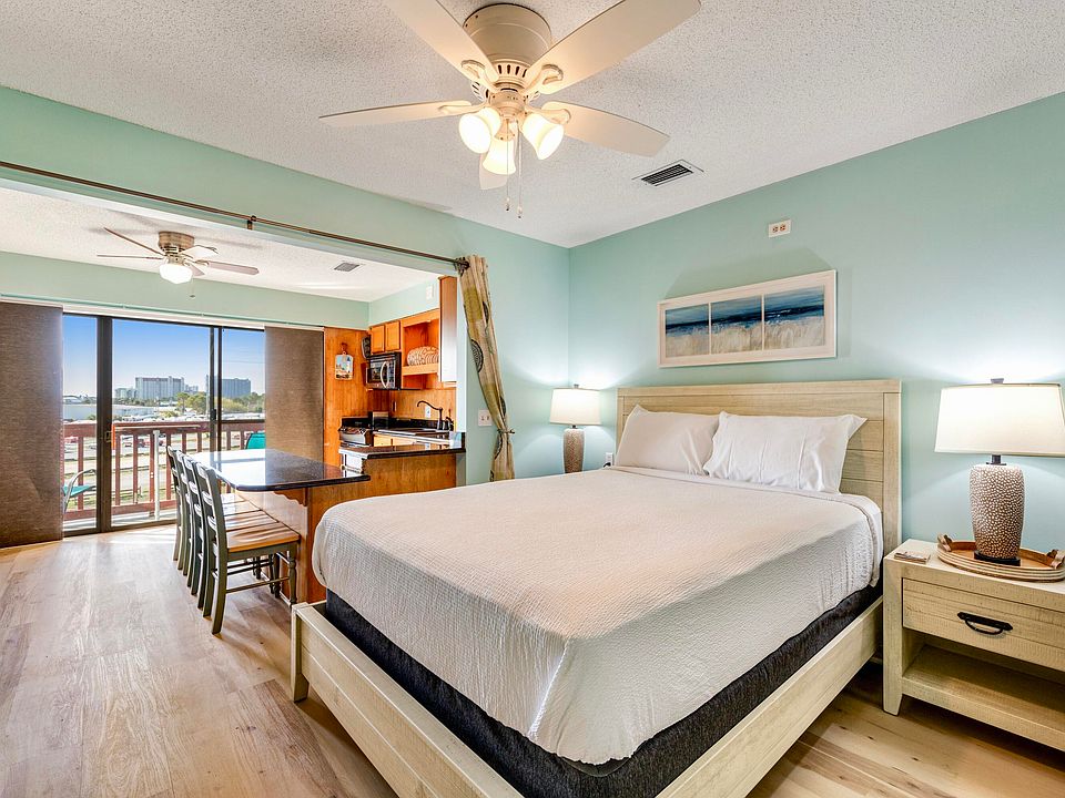 Check out this beautiful studio condo in central Panama City Beach. This unit is on the 3rd floor at and accessible by elevator or stairs. This studio boasts easy walking distance to the public beach access and a peek-a-boo view of the Gulf from an intimate, private balcony. The Inn at St. Thomas Square is a gated, European-inspired villa resort directly across from the beach. Located on the Grand Lagoon with access to the Gulf of Mexico this property features a boating dock. The dock space is first come first serve and trailer parking is allowed onsite. Complex amenities include a Mexican grill, salon, gym, and tennis courts! Plus, guests will have access to a shared pool, tennis & pickle ball courts, BBQ area with seating, sauna, shuffle board, firepit area and a boat dock.
