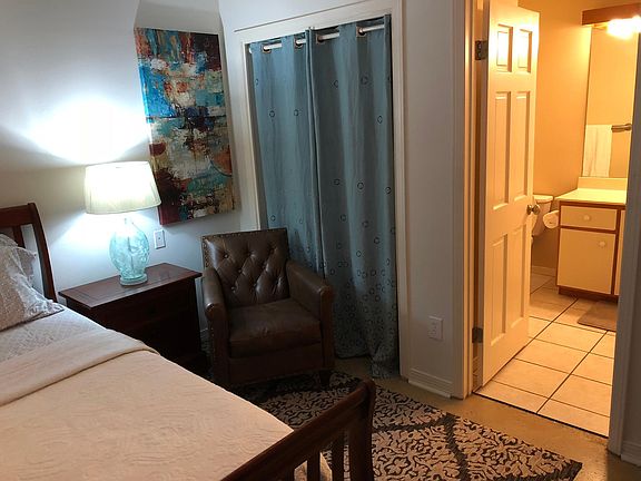 - Exterior features: Great 1 person furnished unit., Must submit a completed Zillow on-line application prior to scheduling a showing., Resturant and shops ground floor. East end of beach @ Joan Ave and Thomas Dr, Utilities included in rent