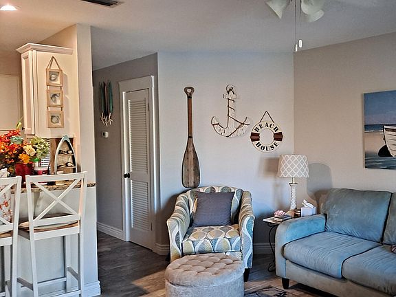 CURRENTLY UNDER CONTRACT, SELLER WILL CONSIDER BACKUP OFFERS' Updated! Water View! .4 mile/8 minute walk to beach using public access 23. This flooring was completely renovated with the (wood look) tile throughout the entire unit including the covered patio! More recently owner has replaced the fridge with ice maker, new washer and dryer, also new hot water heater! All updated bathrooms/kitchen (including farmhouse sink), and best water view! You will see pelicans bathing in the lagoon, you can also see dolphins that visit and other wildlife from your beautiful condo's kitchen/living/patio area! There is access to a dock, pool, pool house, tennis courts, shuffle board, fire pit, grills and so close to the beach, walking distance! It really has everything you need for a rental property or to call home!