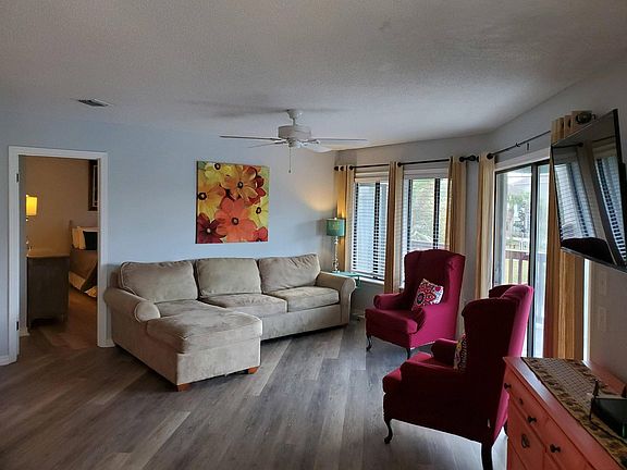 All Utilities Included! Beautiful 2-BR, 2-bath beach villa. Beautifully decorated with updated kitchen with granite countertops, new appliances, completely furnished. Both bedrooms have a bathroom. Master bedroom has king bed with memory foam mattress and a dreamy sitting area for relaxing, reading or napping on the daybed w trundle. Step out onto deck from private exit to balcony and enjoy lagoon views from the back porch. 2nd BR has king bed. Sleeper sofa pulls out to a queen. Sleeps 6. Gated community includes pool, sauna, tennis courts, boat docks, shuffleboard court, clubhouse. Winery, Mexican restaurant, coffee shop, CBD store, hair salon, nail spa all in complex. Just across street from the beach. Public parking at beach access. Long-term lease desired. 3-months and up. Small, non-shedding, well-trained dogs (2 max, 20-lbs max) considered with 6-month lease (HOA requirement). Fully furnished. Includes all utilities, including wifi, furnished.