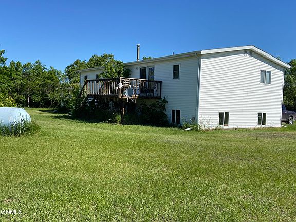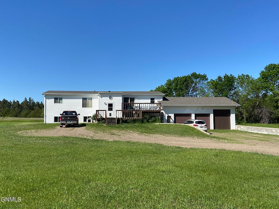 Welcome to your dream retreat! This split-level home on 5 acres, just a short drive from Bismarck, combines tranquility and convenience. The upper level features 2 bedrooms and 2 bathrooms, a bright living room with large windows, and a modern kitchen. The master suite includes a private bath. The expandable basement is framed for a rec room, two additional bedrooms, a bathroom, and a laundry room, ready for your customization. Enjoy the expansive yard with a spacious deck, perfect for outdoor activities, plus ample storage with an attached three-car garage and storage shed. Experience peaceful country living just minutes from Bismarck's amenities. Schedule your private tour today!