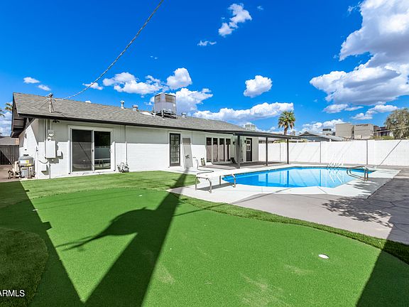 COMPLETELY REMODELED!! This beautiful 3-bed, 2-bath home is calling your name! Offering a low-care landscape and a 2-car sided garage w/ceiling lights. Highly upgraded interior showcases a spacious open layout paired with wood-look flooring, fresh two-tone palette, charming ceiling fans & lighting fixtures, multi-sliding doors to the back, and tons of natural light. The new gourmet kitchen boasts SS appliances, quartz counters/backsplash, white shaker cabinets, and a huge island w/breakfast bar. Enter the large main bedroom to find backyard access and a spotless bathroom w/dual sinks. The entertainer's backyard will surely be your favorite spot! New plumbing, covered patio, putting green, and a diving pool complete the picture. Amazing Scottsdale location! Truly a MUST-SE