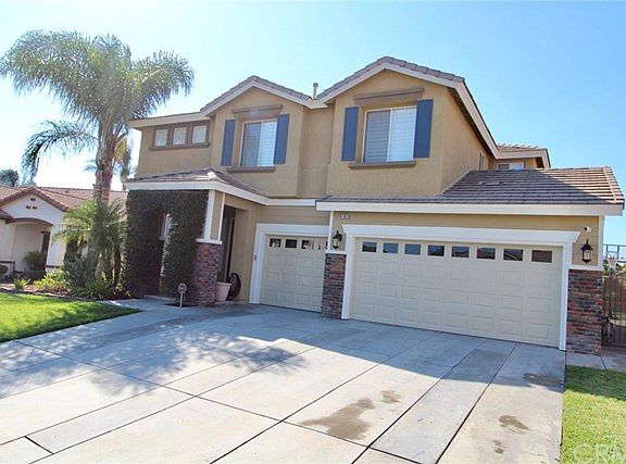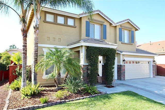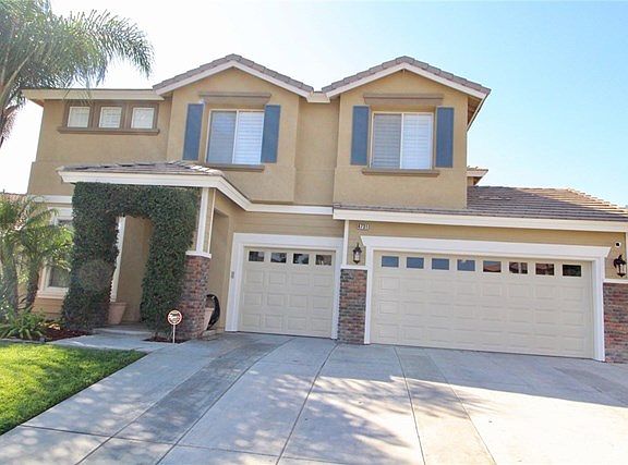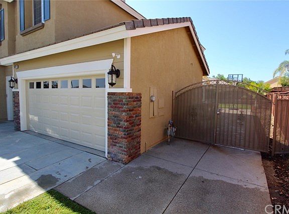 This is the Orangecrest beauty you have been looking to call home! Make your way through the private gates of Autumn Ridge Community and find this 5 bedroom/3 bath home that has every upgrade imaginable. Built in 2003, this home has since been remodeled head to toe and features smoke truffle hard wood laminate flooring throughout the downstairs and in all the bedrooms. High-end Berber carpet complement the stairs and hallways. This home has plantation shutters throughout the entire home. The upgraded high baseboards and very crown moulding throughout breeds elegance. The entrance features a separate formal living room/dining room. Upon entering the kitchen, you are greeted with a large step-down granite center island with seating for 7. The kitchen has granite countertops with a white stone custom backsplash. The double oven and farmhouse sink makes preparing meals much easier. The kitchen also features a wine fridge and bar top for entertaining. One bedroom and full bath downstairs for guests. The upstairs features 4 bedrooms to include a large master suite that has an attached retreat and an enormous walk-in closet. Dual vanity sinks and separate shower/tub complement this beautiful master suite. Large landscaped backyard has enough room to build a pool. This home features an alumawood patio cover and lighting for the whole backyard. This home is automated with Nest thermostats, Wi-fi Garage opener, alarm system and Ring doorbell. Close to schools, churches and shopping.