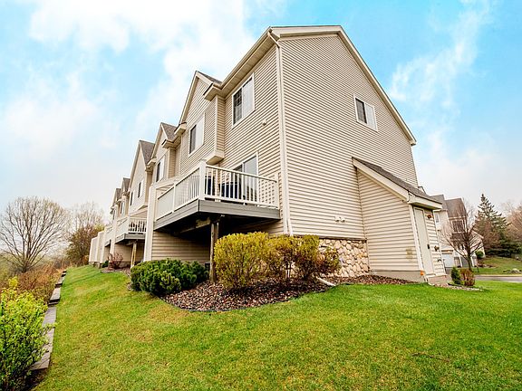 This END UNIT spectacular townhome overlooks a pond and golf course! It truly has it all. Find three bedrooms on one level, a beautiful open concept living space with an updated kitchen, hardwood floors and gas fireplace, bonus space on the lower level that could be easily finished or leave as an awesome storage space. Lower level is plumbed for another bath too! The deck is newer and overlooks the pond as well. With lots of green space, trails and parks nearby this home is in the perfect location. Easy access to highways and shopping just up the street. South facing home with big windows allow for a light-flooded home with a good sized driveway (again, south facing so snow and ice melts faster!) and guest parking very close as well. Roof just 2 years old. HOA includes water. Move-in ready to enjoy!
