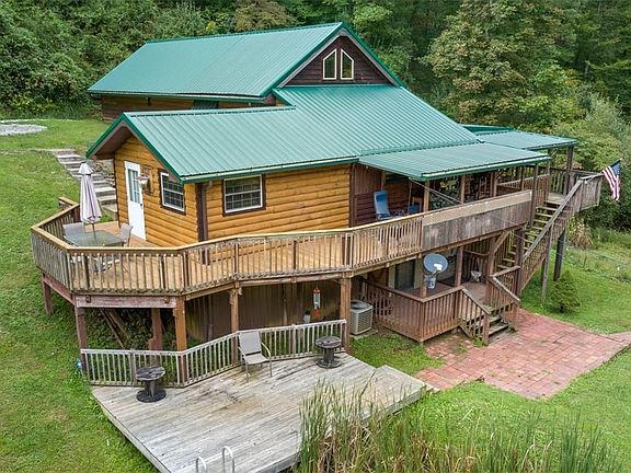Updates include: roof, gutters & downspouts in 2018, 2nd HVAC added in 2018, expanded family room & 2 additional bedrooms added upstairs, exterior french drain, concrete work, upgraded electric, and so much more. The main level of the home offers an open kitchen & dining room, large pantry room, living room, office, laundry room, main bathroom, and the main bedroom with a private bathroom. The insulated & heated garage was built in 2016, the addition on the garage was added in 2022, and the carport was added in 2020. Outdoor features include: spacious wrap-around deck, two driveways/access points from the road, small creek with crossing bridge, & wooded trails. Immediate possession available! Don't let the flood maps fool you...this home does NOT require flood insurance. Let this country road take you HOME!