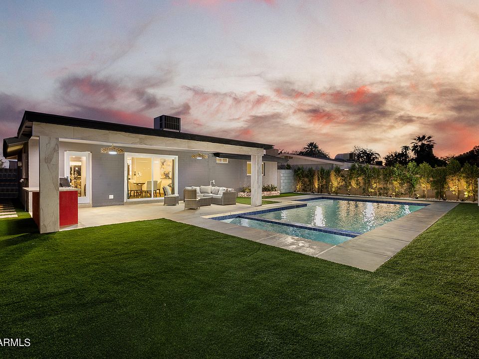 FEATURING: Porcelain Tiles Throughout, Custom Designed Drapes, 2 'Spa-Like' Bathrooms, Gold & Pewter Hardware throughout, Brazilian Quartz Counters, Tankless Water Heater, New Electrical Panel, New Plumbing, New HVAC, Brand New Pebble Tech Pool with Spa, New Pool Equipment & Pool Heater, BBQ & Beverage Center, Brilliantly Handpicked Lighting & Fans, Wood Paneled Detail, New Dual Pane Windows and Sliders throughout, Gold Handles, Under-cabinet Lighting, All New Pavers, Back Patio with Slate Tiled Wrapped Columns & Wood Paneled Ceiling, Artificial 'pet-friendly' Turf Front & Back, New Landscaping & Lighting with H2O System, Double Insulated Garage Door, Epoxy Floored with Electric Car Charger & Built-in Cabinets, Inside Laundry with Custom Cabinetry & Brazilian Quartz Countertops, Brand New Metal Gates, Ample Off Street Parking, Located in Scottsdale Schools!