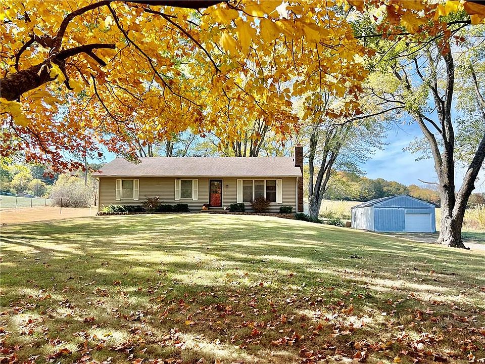 Peaceful & perfect setting for this one owner ranch. So much to love here from the location west of Richmond just a few miles off 210 HWY to 64 rolling pasture & crop ground, outbuilding & ponds. Walk out basement provides additional bedroom, family room & nice size storage room. Sit out back on the covered porch & enjoy your morning coffee. Out building next to home has electric, concrete floor and garage door opener. 2nd home on property has been rented the past 20 years. Would need some rehabbing but good for mother n laws home or childrens first home or rental. Acreage could be split almost right down the middle as they already have separate entrances.