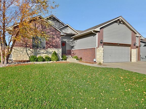 Check out this beautiful ranch home nestled in Tyler's Landing. Maize School District! Very open split bedroom plan. As you walk in you find a large living room with gas fireplace. Granite counter tops and eating bar, travertine backsplash, gorgeous cabinets, stainless steel appliances and walk in pantry all within this plentiful kitchen! Main floor laundry. Master bedroom features large windows and access to the back deck. The master bathroom has a separate shower, soaker jet tub and walk in closet. Two additional bedrooms and hall bath on the main level. EQUITY BUILDER!!! The view out basement has 2 bedrooms, bath and an office finished. Finish the family room the way you want it ! Oversized 3 car garage. Privacy fenced yard, irrigation well and sprinkler system. The swing set stays with the home. Schedule your appointment today to view this great home before it is gone!