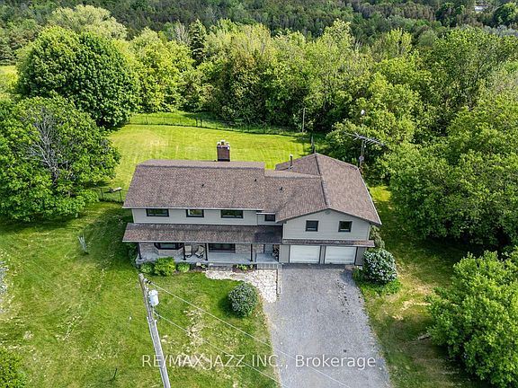 Discover the perfect balance of country lifestyle and modern convenience at this 60 acre property in Clarington. Just minutes to the free 407 extension, close to Brimacombe Ski Hill (with night skiing!!!), and near the Ganaraska Forest's extensive trail network for hiking, horseback riding, snowmobiling and recreational vehicles, this location is ideal for active families and outdoor enthusiasts. With approx.. 42 workable acres, the land also offers excellent potential for horses, hobby farming or gardening. The spacious 4 bedroom , 4 bathroom home features a versatile layout with a great room and wet bar, multiple living spaces and an upstairs office/bedroom with its own private staircase. While the design could suit multi-generational living, it has always been enjoyed as a single family residence. The lower level sub-garage provides secure storage for tools, tractors and machinery and the property accommodates parking for up to 22 vehicles. Updates include geothermal heating & cooling(2009), roof(2014), siding/windows/fascia(2015) and interior painting(2021). Utilities average just $380/month and high speed internet makes working from home simple and reliable. With its mix of acreage, upgrades and unbeatable location, this property is a rare opportunity to enjoy the privacy of rural living while staying connected to everything the Durham Region has to offer.