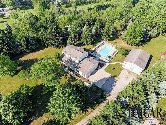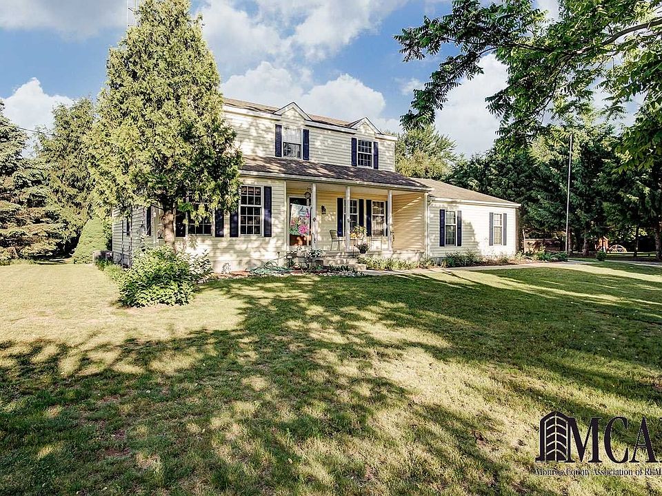 This is your own mini resort. Country lot almost 3 acres with city Water. Updates thru-out. Gorgeous Kitchen with Cherry Cabinets. French doors to formal dining room and living room. See thru gas fireplace between living room/family. Finished basement, block windows plus 30 x 45 10' ceiling Morton Building. Attic insulated, with gas line. 18 x 36 in ground pool all updated, 4' - 8 1/2 ' deep. Monroe Road Elementary School.