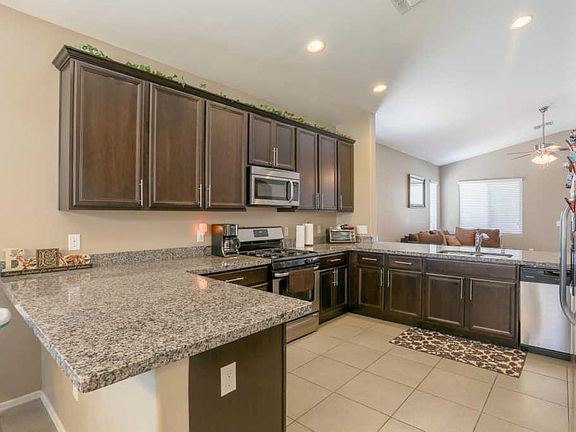 Welcome Home! This stunning 3 bedroom 2 bathroom home in Saguaro Springs is just what you've been waiting for. This home offers gorgeous mountain views! The kitchen boasts marble countertops, SS appliances and ceramic tile floors! Beautifully landscaped backyard with putting green. Don't wait! Book your showing today! Neighborhood parks make this a great place to call home.Please be sure to check out 3D virtual tour!