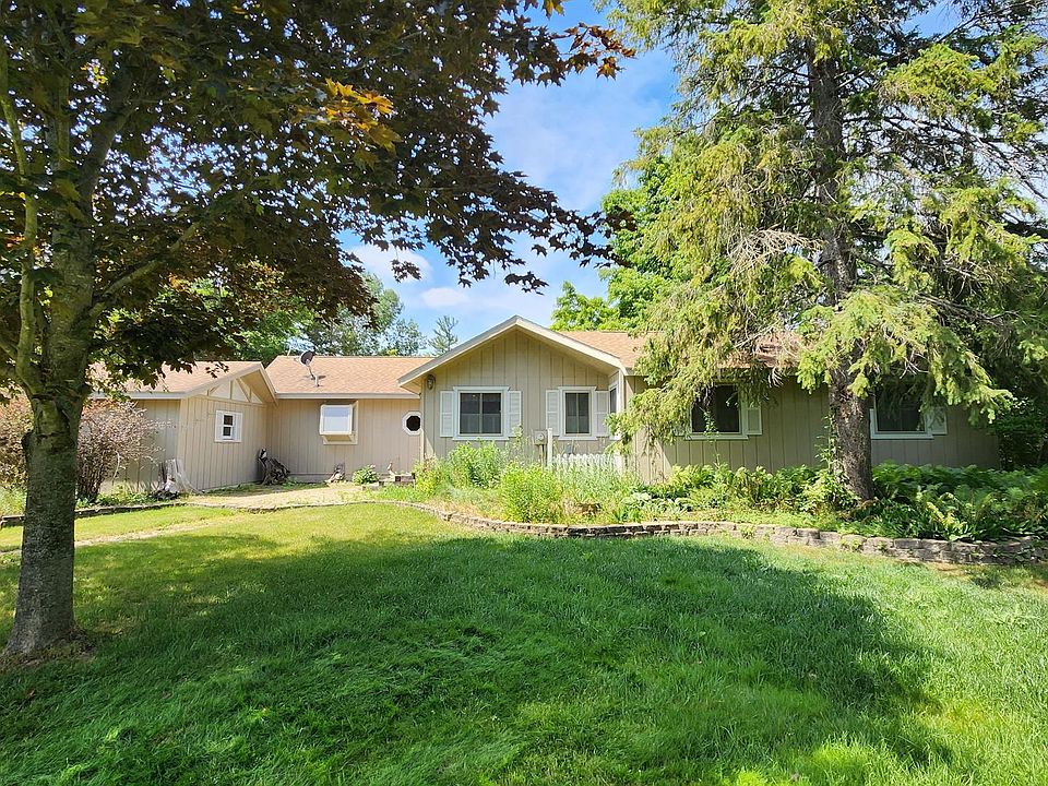 Your northern Michigan oasis awaits! Designed and built on a pristine curve of the renowned brook trout fishing Black River rated Class A. 177' river frontage with walk out lower level to a 3,400 square foot deck 50 feet above the river bank. Buried natural gas and electric and fiber internet great for working from home. Features hardwood floors, knotty pine walls, vaulted ceiling great room, new flooring in bedrooms and interior paint, and 7 door walls. High efficiency furnace and well water with softener and reverse osmosis tap, aerobic septic system. Master bedroom complete with a private deck and fireplace. Guest house includes full kitchen, toilet and sink, plans for shower install. 1.5 car attached garage, a shed and barn for storage, also room for a covered car port. Lower deck area could be the perfect opportunity for a secluded hot tub. Located 3 minutes from downtown Onaway.