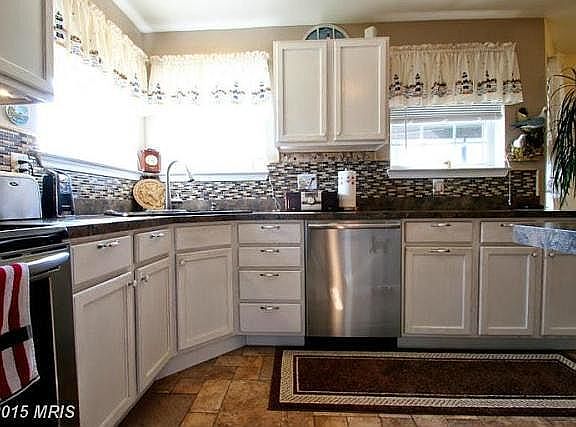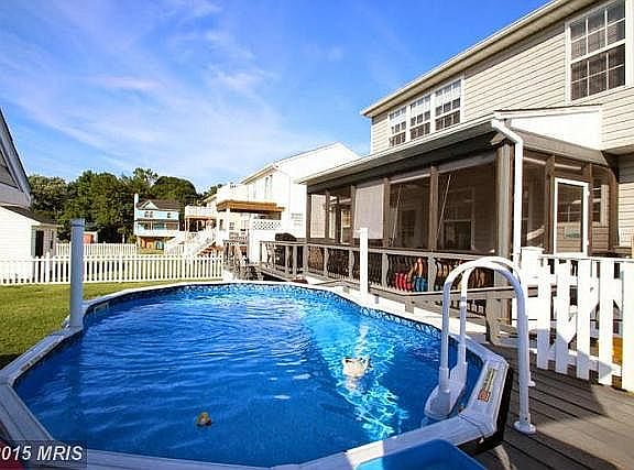 Millers Island Beauty! 4 Bedrooms, 2.5 Baths approx. 1650 sq.ft. ONLY 1 BLOCK FROM THE WATER! Wrap around deck, screened porch, above ground pool, fenced yard, shed & garage. Updated kitchen w/ SS Appliances & glass tile back splash! Spacious master has an updated bath & w/i closet. First floor BR/den & PELLET STOVE in the LR! CURRENT FLOOD INS ONLY $610/YR.