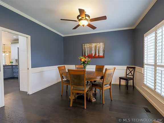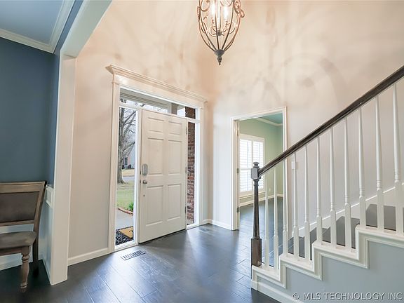 Adorable Home in Jenks School system! This one won't last long! Beautiful updated home with mature trees on a cul-de-sac. Exterior and interior painted in 2023. NEW ROOF just installed June 2024. Elegant Plantation shutters on windows. The Office sets conveniently right off entry. The primary bedroom is down, with large recently-updated primary shower and fixtures. Three bedrooms plus a large Game room are upstairs and perfect for a theatre room or gaming area. A Large living room down with fireplace with gas logs. A nice size Formal dining room sets right off entry. The Kitchen has granite countertops with an eating bar and newly painted kitchen cabinets, a large pantry, a Built-in oven and microwave, and a New dishwasher. The Refrigerator is included but not covered under warranty. There are Wood Floors in the living, formal dining, stairway and hallways which are only 4 years old. There is Tile in kitchen and baths, and carpet in bedrooms. Nice large walk-out attic space! The AC Condensers and Hot water heater are 3 years old. This home backs to a wooded area and has a large patio. It has a Sprinkler system, new French drains, and has a newly landscaped and sodded yard. Amazing Neighborhood pool, park and walking trails, including HOA organized activities. Close to shopping! A Must See!!