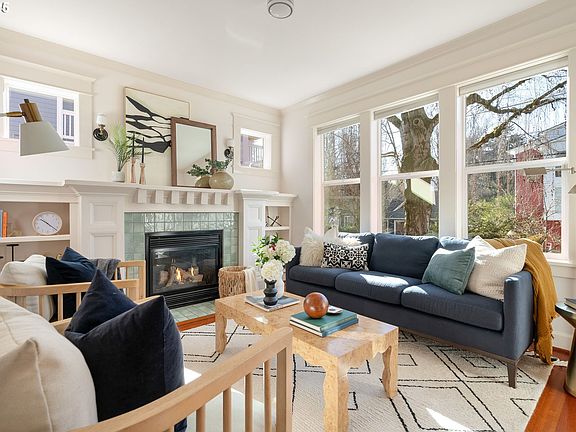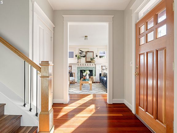 This one is special! A gorgeous home with whimsy and charm- hard to find in newer construction and with a layout that anyone will love! It’s the dream of Portland. Built in 2004 with a vintage look that fits perfectly in the Cathedral Park Neighborhood, one of the best features is a classic front porch and balcony deck just above it, overlooking the St Johns bridge, Forest Park and your beautiful, tree-laden front yard. The home and property are both spacious and charming, located on the quieter part of Willamette Blvd. Inside, you’ll find that great layout: proper foyer, formal living room and formal dining room, large kitchen and family room combo with french doors leading to the back patio. The kitchen has it all with a gas range, large pantry, plenty of cupboards and counter space plus a large kitchen island. There are wood floors throughout the home along with very tall ceilings and tall windows which bring in abundant natural light from all sides. Plus, tucked away on the main are a half bath and laundry room. Upstairs you’ll find a loft-style oversized landing leading to the second level balcony. At the other end of the hall is the large primary suite with a walk-in closet, jetted soaking tub, walk-in shower, and double sinks. There are 2 more lovely bedrooms on the upper level along with an additional full bathroom. The back patio is perfect for outdoor dining and morning coffee. It has hardscape with flex space and is fenced. There's a deep one-car garage with shop or storage space. This location is a true walker's paradise, just a few blocks west of the cute shops, cafes and dining in downtown St. Johns and a few blocks east of stunning Cathedral Park with a dog park, beach, river access, the Jazz Festival in July, and more throughout the year. Forest lovers and trail runners are less than a mile on foot to a Forest Park trailhead. It is less than 15 minutes to both downtown Portland and Sauvie Island. Open Houses: Sat 02/01 11am-1pm & Sun 02/02 12pm-2pm. [Home Energy Score = 5. HES Report at https://rpt.greenbuildingregistry.com/hes/OR10235448]