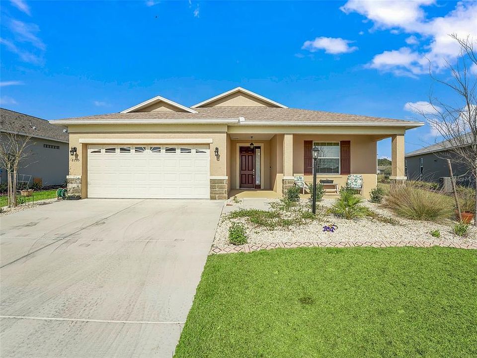 2021 GINGER MODEL -- located in the desirable community of WEYBOURNE LANDING in On Top of the World. Built in 2021, this gorgeous Ginger model is located in Weybourne Landing and boasts 1,747 square feet of well-stated living space. As you enter this home, you'll immediately notice the open and inviting floorplan. The crown molding throughout the living area and kitchen adds an elegant touch, while the neutral luxury vinyl plank flooring in all living and wet areas adds a modern and fresh feel. The kitchen cabinetry offers upgraded undercabinet lighting and a neutral backsplash provides a bright and inviting atmosphere. Storage is plentiful in this oversized kitchen with some stainless steel appliances - including a GAS range! This home features two (2) spacious bedrooms PLUS a flex room with double French doors; Perfect for an office, den or craft room. The primary bathroom includes an upgraded walk-in shower with bench, stone flooring, and modern gray tilework. With dual sinks and plentiful storage, this bathroom is a true retreat. This home also includes an indoor laundry room with LG washer and dryer and storage racks, making laundry day a breeze. One of the best features of this home is the enclosed lanai with no rear neighbors, offering a great space to enjoy the Florida outdoors. The home also has a charming front porch, perfect for sipping your morning coffee or chatting with neighbors. Residents of Weybourne Landing can also enjoy beautiful amenities that include a community clubhouse, pool, fitness trail, dog park, and so much more. Don't miss out on this incredible opportunity to live in this beautiful home in a sought after community!