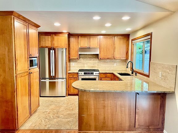 The updated kitchen has granite counter tops, a gas stainless steel oven, a stainless fridge, stainless dishwasher, and opens to the dining room and living room. The living room contains a gas fireplace. There is a great patio off of the dining room and a large fenced backyard. The Master Suite has an updated master bath and walk in closet. Two car garage with great storage space. The home is also equipped with A/C. All bedrooms have brand new carpet. Lawncare is included. Laundry room is inside the home. Only hookups are provided. Tenants to provide their own washer and dryer. No Smoking/Vaping and No Pets - No Exceptions Truly a wonderful home and neighborhood! Schools: Hiteon Grade School, Conestoga Middle School and Southridge High School. Verification of schools is recommended as boundaries change Within the Tualatin Hills Parks and Rec district Actual Lease Term is 18 Months. This is not an available option under Lease Duration which is why only 1 Year shows.Tenant is responsible for all utilities. In addition, only Washer and Dryer hook ups provided. Landlord to provide professional lawncare service. Renters Insurance is required and proof of insurance must be presented prior to move in.No Pets and No Smoking/Vaping- No Exceptions
