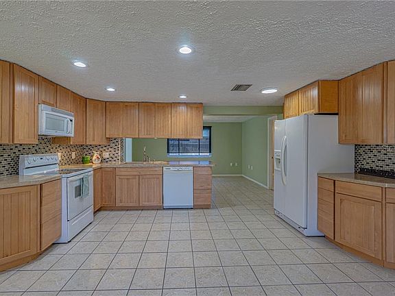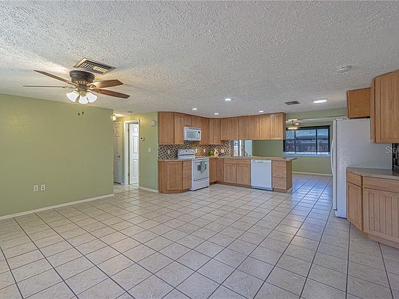 This beautiful home is ready for new owners! Walk into the large, open living room and kitchen with lots of cabinet space, recessed lighting, breakfast bar & more. With a separate dining area that could double as a family room. The split floor plan features a Master with walk-in closet and private bath as well as two other good sized bedrooms and updated bath with tub. Step outside into the large, screen enclosed back porch or enjoy spending time on the raised & covered outdoor deck, these areas are great for entertaining, dining al fresco and relaxing. Utility shed offers lots of added storage space. Convenient location near US-19, schools & beaches. Don't miss out on this great home!