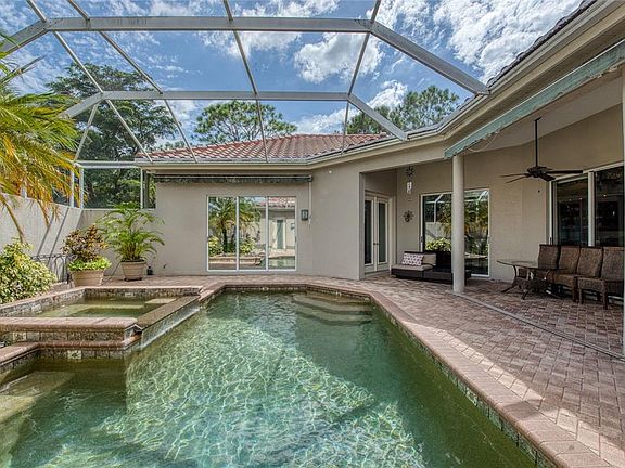 - Exterior features: Cable included in rent, Courtyard, Cul-De-Sac, Driveway, Dry Bar, Eat-in Kitchen, Enclosed, Garage Door Opener, Grounds Care included in rent, Heating system: Central, In Ground, Internet included in rent, Irrigation System, Kitchen/Family Room Combo, Laundry Room, Lighting, Lot Features: Cul-De-Sac, Patio, Primary Bedroom Main Floor, Rain Gutters, Rear Porch, Resource Property Management/Cristina Stewart, Screen Enclosure, Screened, Side Porch, Sliding Doors, Solid Wood Cabinets, Split Bedroom, Sprinkler Metered, Thermostat, View Type: Golf Course, Walk-In Closet(s)