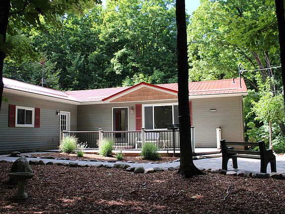 This 4 bedroom/3 bath home sits on 20 private wooded acres and features main floor primary with bath and walk in closet. Some upgrades such as Geo thermal HVAC system, metal roof, solid surface counters, hardwood floors, dual hot water heaters, fresh paint/carpet throughout and a ceiling fan in every room. Rolling terrain, trails, mature trees, wildlife, updated yard with plenty of gathering areas and a separate driveway leading to the 30'x50' pole building. Minutes from Torch Lake, Clam Lake, Lake Bellaire, Grass River, area recreation including golf. This expansive property offers privacy, natural beauty and endless possibilities.