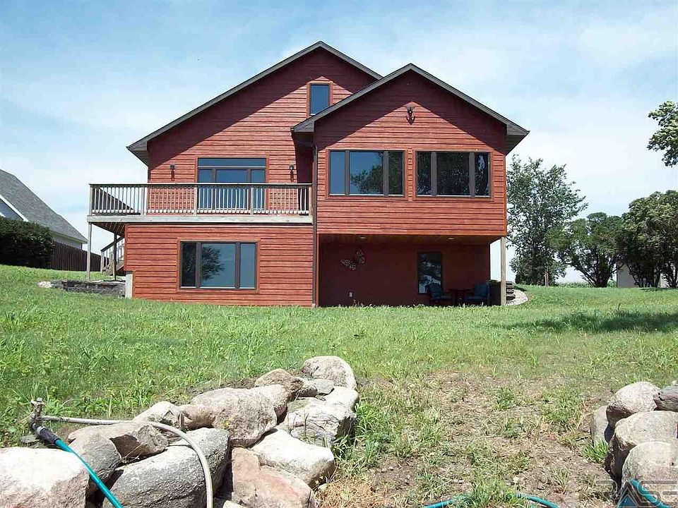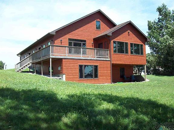 DRY BASEMENT!!! No water problems Lake front property on Lake Cambell, just 14 miles from both Brookings SD and Volga SD. House is located on two lots in Brookings county. The house is a story and half home with all three levels finished, and walk out basement. 2 stall jumbo garage. The master bedroom has walk in finished closet, and a four season room that is entered through French doors from the master bedroom or from the deck that wraps around from the kitchen. Master bath has a walk in tiled shower with two shower heads, one is a waterfall shower head. The master bath also includes double sinks and a jacuzzi tub. Kitchen includes an island with storage. All of the cabinets and drawers in the entire house are quiet closing hinges. Fourth bedroom located over garage has private entry as well as 3/4 bathroom with built in storage. Basement has two over sized bedrooms beautiful rock fireplace that is gas. The basement also has an area designed for a wet bar with plumbing/sewer in place as well as cable hookups to enjoy a refreshment while over looking Lake Cambell.