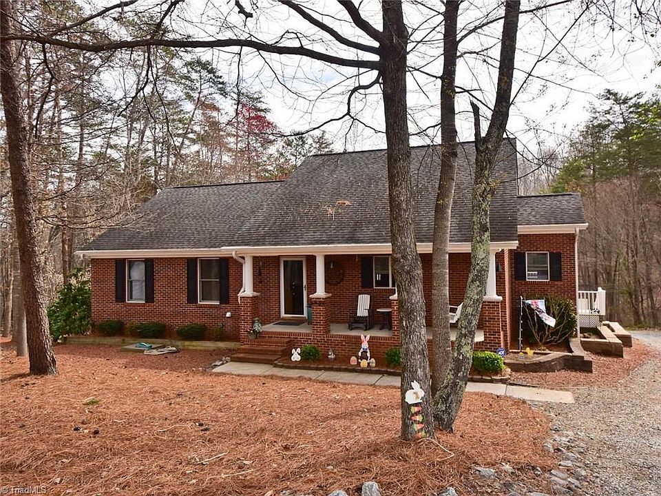 PRIVACY is yours at this peaceful 2+ acre lot hidden just minutes from Belews Creek! This beautiful brick ranch boasts an open floor plan with three beds and two baths all on one level. Built on a Superior Wall basement system, this home has a full basement with a spacious den, craft room, half bath and semi finished work shop. The nicely landscaped yard has room for kids, dogs or a garden, make your appointment to see it today!