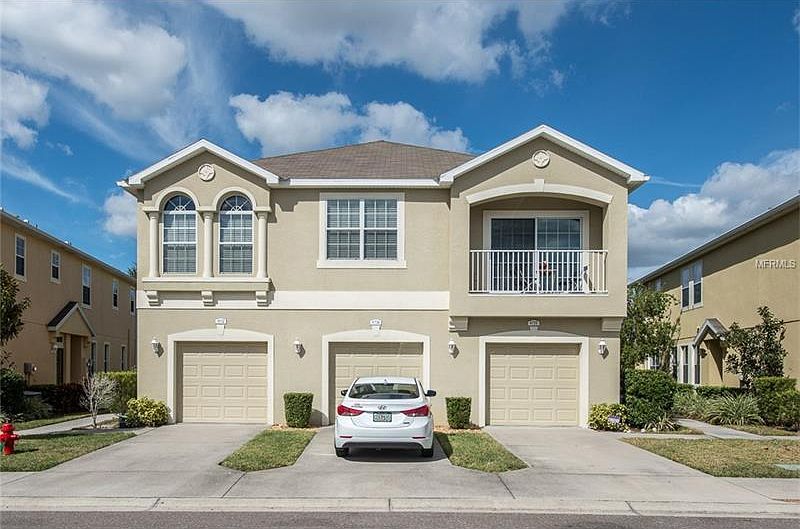 MOVE IN READY TOWNHOME! This beautiful 2 bedroom, 2 bathroom townhome will give you 1,018 sq ft of generous living space. Situated in Eagle Palm, a gated community, minutes from I-75 and the Selmon Expressway. The entire living area is located on the 2nd floor with a spilt bedroom floorplan. The delightful kitchen has it all! Beautiful dark wood cabinets, Corian countertops, stainless steel appliances, tile backsplash, breakfast bar with pendant lights. The living room is light and bright with a vaulted ceiling. The master bedroom has an en-suite bathroom with dual sinks and a walk-in closet. Both bedrooms have ceiling fans and custom wooden closet organizers for maximum storage. Ceramic tile is in the kitchen and both bathrooms. The oversized 1 car garage gives you extra space for storage. Washer and dryer included! Residents can enjoy the community club house and swimming pool. Easy commute to Downtown, MacDill AFB, Tampa Airport, St. Pete and Clearwater beaches. Ask about the First Time Home Buyer Down Payment Assistance Program. Call today to schedule your private viewing!