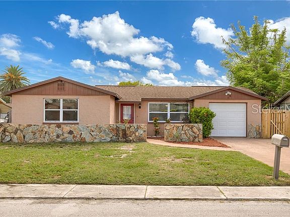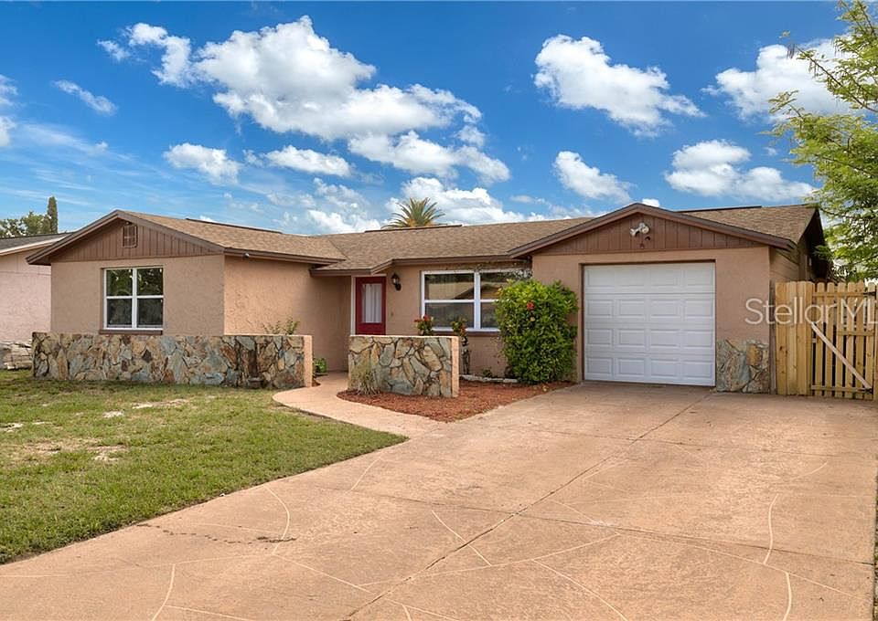 RARE 4 BEDROOM! Welcome home to 8736 Sabal Way in the beautiful community of Sage Crest Gardens of Port Richey. This 1,585 sqft roomy 4 bedroom, 3 bath home is ready for your family! As you enter the home you have a light filled dining area, big enough for the largest of family gatherings with a pass through to the newly updated kitchen! Modern and fresh, this kitchen has plenty of room for multiple cooks in the kitchen! The living room is spacious and has a stone fire place wall with plenty of room for entertaining. This home has a split plan, with the master suite featuring an updated ensuite bathroom & plush carpet. The other three bedrooms are across the home and share a guest bathroom that includes a tub. Out back you have a concrete patio and fenced in yard. The playground will entertain all year round! Remediated Sinkhole property. Come see today before it's gone tomorrow!