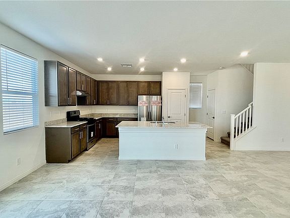 newer home near Rhodes Ranch, 4bedrm 3 bath with 2 car garage, master bath with separate tub & shower, bath2 with extended vanity & cabinets, upgraded stainless steel appliances, 1st floor with upgraded tile, kitchen with upgrade 42"cabinets, granite countertop with island, upgrade single basin stainless steel undermount sink, 16 seer air conditioner system with wifi smart thermostat, energy star qualified, Smart Tech Package Included Fiber Optic Ready package. Includes a 30" plastic smart box, dedicated high voltage circuit ran to the smart box (110volt outlet), conduit (smurf tube) ran from the smart box to the electrical panel, cat-6 and RG6 ran from the smart box to the electrical panel, and 2 1+1 outlets located in the Primary bedroom and great room ran to the smart box. fluorescent light in the garage. Mission railing at full stairway. upgrade carpet. extra parking spaces direct across from the house. brand new stainless steel Refrigerator, washer and dryer , blinds thru out.