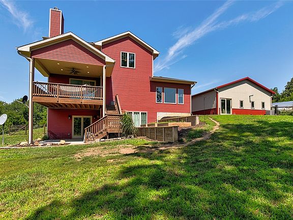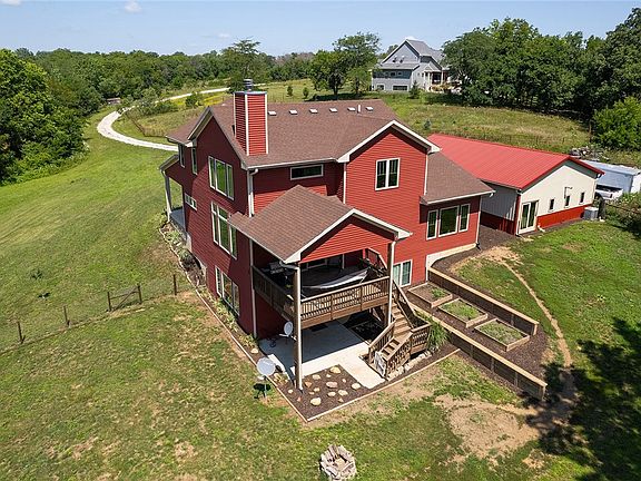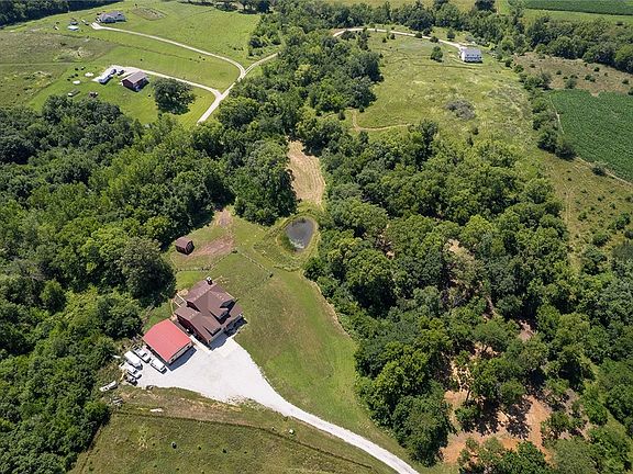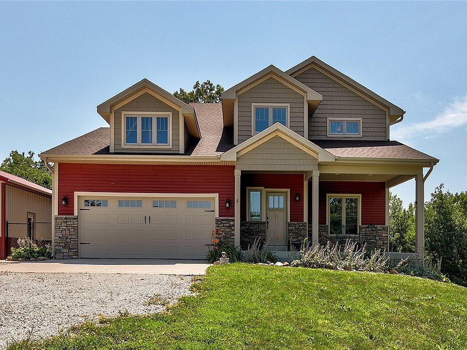 This 1.5 story home has over 3600 sq ft of total finished living space including 5 bedrooms and 3 1/2 bathrooms. Sitting on 6.12 acres with mature trees, 2 streams, and a pond all located at the end of a dead-end lane with an abundance of privacy. You will be greeted home by a spacious front porch and, upon entering the home, a dramatic 2 story entrance with amazing views from the large windows. Main level features the Master en-suite, a bedroom/office, living room, with a real wood burning fireplace. The open kitchen is perfect for entertaining guests and family members. Kitchen features stainless steel appliances that stay with home, corian countertops and corner pantry. Upstairs you will find two spacious bedrooms, a full bath and a huge loft area overlooking the living room and fireplace with beautiful views of the nature outside. There is a finished basement with extra storage spaces, a finished bedroom and full bath, and a multipurpose room. This home features a 2 car attached garage as well as a 30x40 shop with hanging gas heater and has spray foam insulation. Plenty of options for outdoor activities as this property is located close to the Great Western Bike Trailhead, Middle River kayaking /canoeing, Lake Ahquabi, and Pammel State Park, which has great outdoor activities. This is a must-see location. Call today for a private showing! All info obtained from Seller & public records.