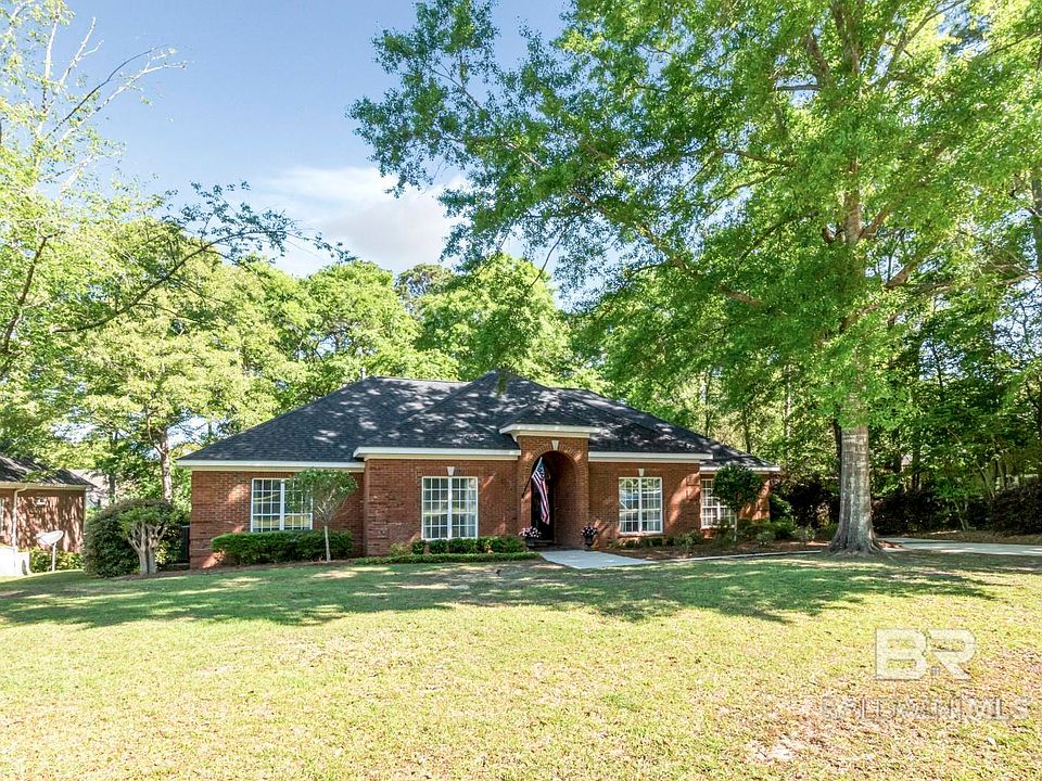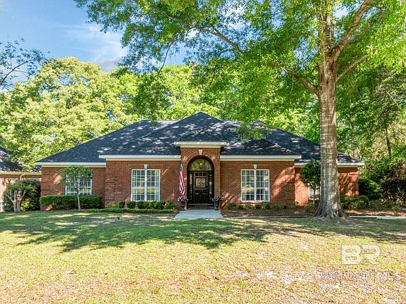 WELCOME HOME to 8737 Ash Ct located on a quiet cul de sac in Timber Creek! This all brick family home with over 3100 sq boasts 4 BR, 3.5 B, bonus and side entry double garage with workshop space. The lovely covered entrance leads into a foyer flanked by French doors to a living/office/play/flex room and dining room; The expansive, sunny great room features wood flooring, a fire place, large windows that open to the covered back porch and deck overlooking a private backyard. Off the great room is the spacious kitchen with ceramic tile, granite counters, cabinets galore, and eating bar; the kitchen opens to the breakfast area, powder room, door to laundry room with sink and stairs up to the bonus room. The split floor plan features a guest room, guest bath plus the primary bedroom with wood flooring, custom built-ins and ensuite bath with spa tub, shower, large vanity with double sinks and 2 walk in closets! The opposite guest/children’s wing features 2 bedrooms with new wood flooring and a large shared bath. If indoor and outdoor entertaining spaces is what you need in your next home…..look no further! Termite bond with Arrow. BONUSES: FORTIFIED ROOF (2021); HVAC (2023); TimberCreek amenities include two pools, tennis courts (pickle ball), and a clubhouse, all conveniently located near I-10, shopping, and within the highly sought after Spanish Fort School District. Don't miss out on this opportunity. This home will exceed your expectations! Schedule your showing today! Buyer to verify all information during due diligence.