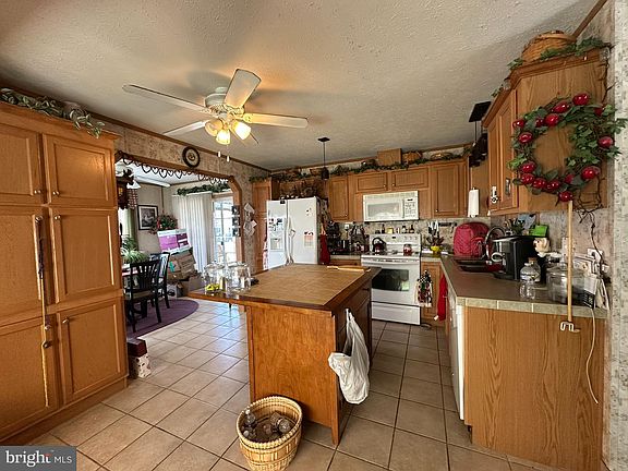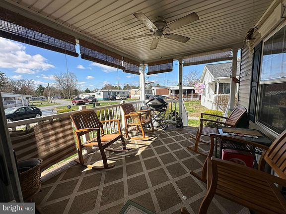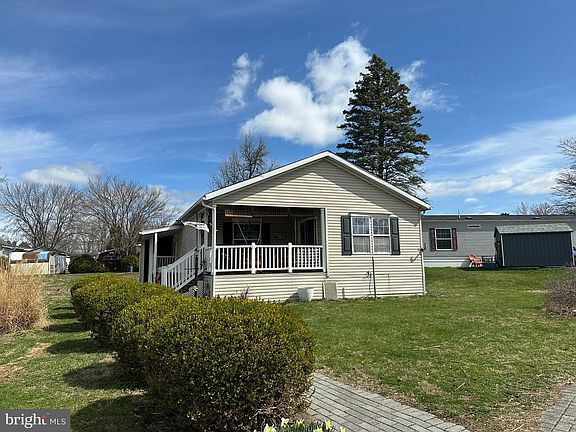 A custom designed Skyline home - 3 bedrooms, 2 full bathrooms, and 1448 sq. feet of living space. Beautiful covered porch, 5/12 roof, paver driveway and walkway, and a built out addition with bay window adds to this home's curb appeal. Inside you'll find a sunny dining room, hardwood kitchen cabinetry, and spacious master suite. The laundry room has a separate entrance that leads to a covered storage area. There is also a matching vinyl storage shed on the property. A full set of newer appliances is included - refrigerator, range, dishwasher, microwave, and stackable washer/dryer. The Central A/C and propane heating system has been serviced yearly. Located in Parkland School District. Total yearly taxes are approximately $930 with the homestead discount. Lot rent in this section of Green Acres is $1071/month and includes water, sewer, and trash. Financing is available.