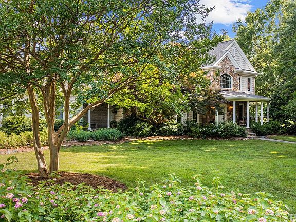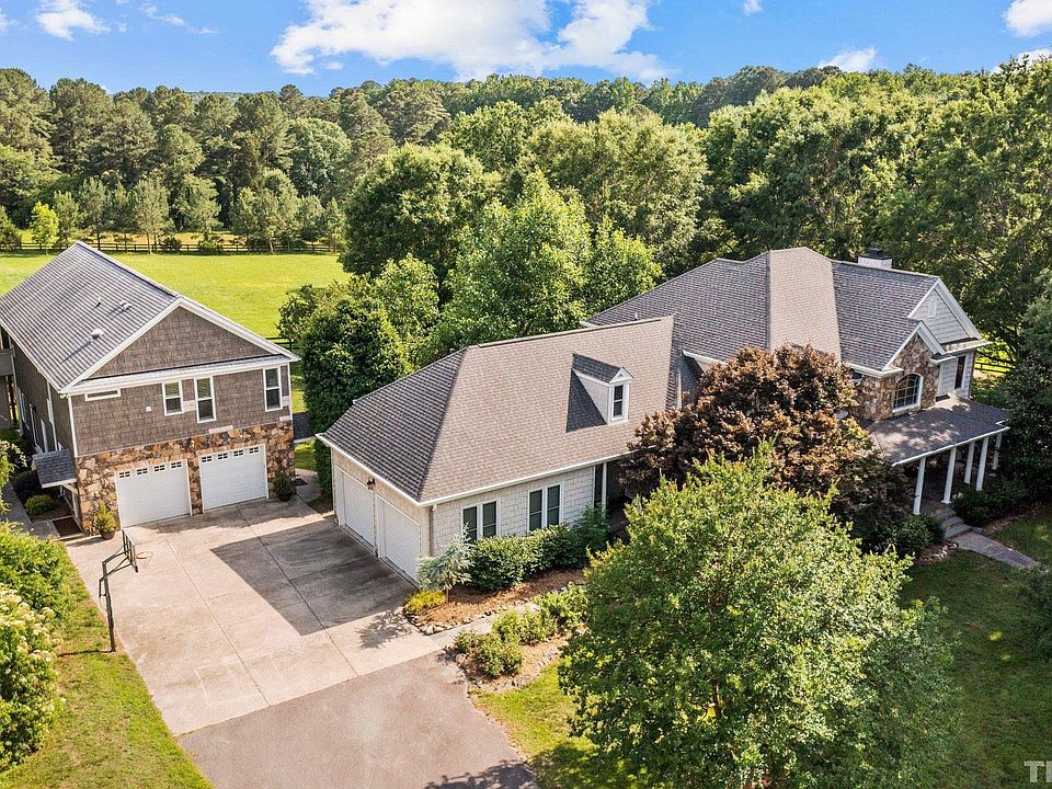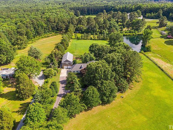 Stunning estate on 5 acres w/pond, pastures! 1313 sq.ft. exquisite 1BR in-law apartment w/elevator, sc porch, pond view! Custom home offers 4+BR, chef's kitchen w/gas & high end appliances. 1st flr master w/infrared sauna! Upstairs: 3 BR, 2 BA + huge bonus! Basement offers options: family rm, + flex rm w/closet, full bath, studio, storage! 4 car garage. Horses welcome! Chicken coup, sheep stalls, space for pool! High speed internet. No HOA! Secluded & private near RTP,Cary,Apex. Walk to Am.Tobacco Trail