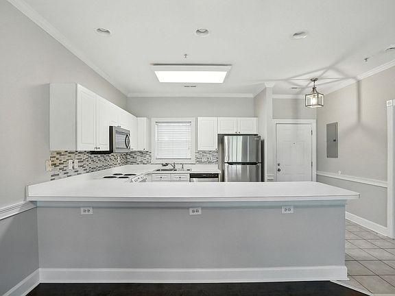 Located in the Heatherstone community just off E. WT Harris Blvd, this charming ground-level condo offers 2 bedrooms and 2 full baths. The home features an open-concept layout with the kitchen overlooking a spacious living room, complete with plenty of cabinet storage and a convenient breakfast bar. The versatile floor plan provides ample space for both living room furniture and a full-sized dining table. Recently freshly painted, the condo also boasts a brand-new stainless steel refrigerator and dishwasher. Stylish Luxury Vinyl Plank (LVP) flooring extends through the living room and both bedrooms. Each bedroom is generously sized and includes its own attached bathroom, providing comfort and privacy. Enjoy a private patio off the living room, perfect for relaxing or entertaining. Washer and dryer are included for your convenience. Pets are conditional.