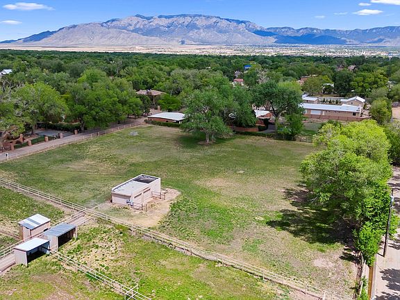 Prime custom home lot in the sought-after Los Ranchos neighborhood! This serene pasture offers the ideal setting for your dream estate. Features include city water and sewer access, an irrigation well, and MRGCD surface irrigation rights. The fully fenced lot includes a small outbuilding and two majestic cottonwood trees. Don't miss this rare opportunity to build on an exceptional property!