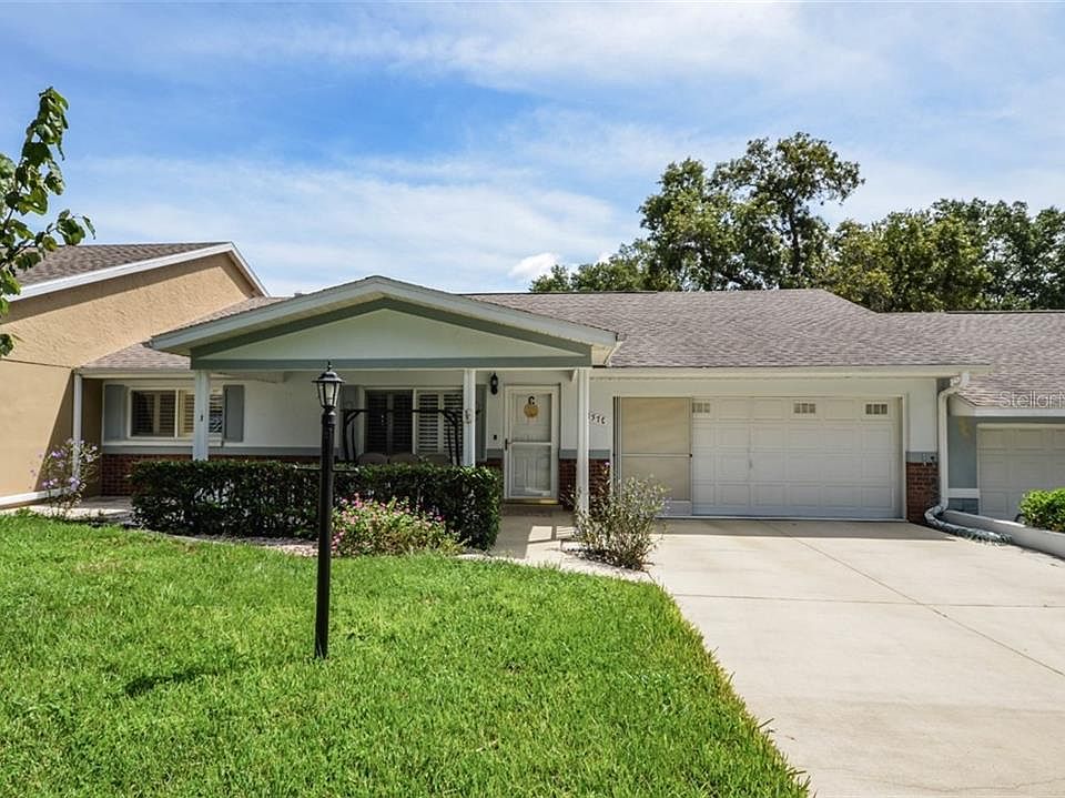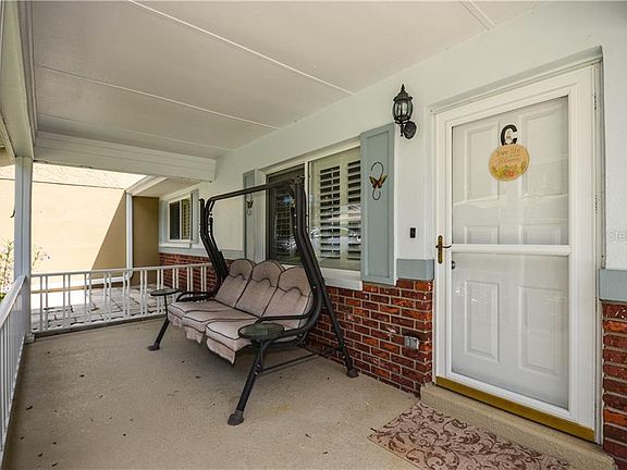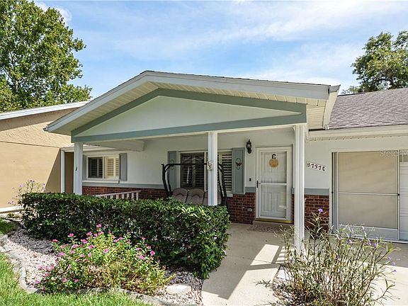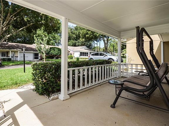 OVER $31K in RECENT UPGRADES AND IMPROVEMENTS and LOCATED ON A QUIET DEAD-END STREET. This very nice, well maintained, expanded Montgomery model villa home is located in the much-sought after gated 55+ golf community of On Top of the World. Home features 2 bedrooms, 2 baths, 2-car Garage, Flex Room, enclosed Lanai under HVAC, covered golf cart parking, newer HVAC (2018), newer roof (2015), inside laundry, newer windows throughout (2006), newer custom Plantation shutters and blinds throughout (2017), new laminate and tile flooring (2018), 3 Solar tubes (2015), new knockdown finish on ceilings (2019 - popcorn ceilings removed), refinished Master Bath shower tile surround and shower floor (2018 - no grout to clean), ceiling fans, extra-deep driveway, garage screen, pull-down stairs to access attic storage, and MORE! Lawn care, basic cable, gym, exercise classes, 24-hour guarded gate, exterior painting, and more are included in your monthly HOA fee. A large front porch under roof welcomes you to the home. Enter the spacious Living Room. Moving toward the back of the home you find the Kitchen that opens to the Flex Room (some use this room as a dining room and others use it as a family room. An enclosed Lanai is located at the back of the home. The king size Master Bedroom Suite is located at the back left corner of the home and it features a large Walk-in Closet with multi-level rods and shelves, and Master Bath with large step-in Shower. The large Guest Bedroom is located at the front left corner of the home and it features an extra deep storage closet