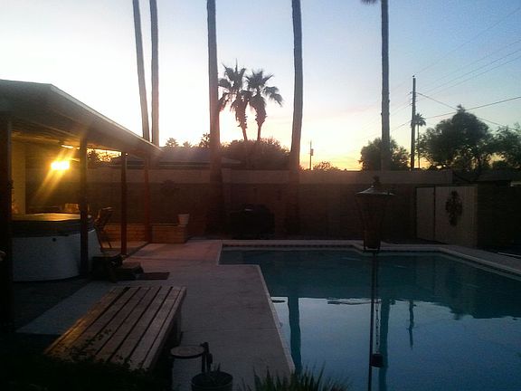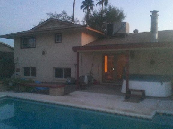 Fantastic home is a great neighborhood. Close to 101, ASU, Old twown Scottsdale, dining, shopping, and recreation. Great tri-level home, tastefully decorated, gingerly cared for, and wonderfully upgraded. Crown molding in the living room with warm wood look tile floors and a ledgestone gas fireplace. Two large master suites, one up and one down. Both have upgraded bathrooms that include massaging shower tower, or rain fall showers heads, double vessel sinks, stone and Koehler upgraded showers and tile floors in each. Downstairs could be used as an in-law suite with a family room. Large eat in kitchen with clean white cabinets and pantry that feature easy glide drawers, topped with solid granite counters, includes a stainless steel appliance package. Huge family room with 20" Travertine tile, wet bar, lots of closet space. Three bedrooms upstairs with ample closets, two with built-ins, all with mirrored doors, upgraded ceiling fans, wood windown blinds and carpeting, Oversized two car attached garage with electric door opener and built-in shelving. Large laundry/mud room with pannel of large custom storage cabinets and a new washer and dryer. Two sets of patio doors open to the large covered flagstone patio with a great hot tub to the right, misting system, ceiling fan, leading to the beautiful gas heated diving pool, new cartridge filter (no backwashing) easy rock landscaping, fire pit, raised gardens, built in bench, newly renovated cool step concrete surrounded by a block wall for privacy. Professionally landscaped with mature fig and palm trees and upgraded exterior lighting. All new energy efficient windows and new architectural shingle roof with a 25 year transferrable warranty.All appliances are energy star rated. WiFi controled 7 day programmable thermostat lets you control the system from your computer or smart phone.