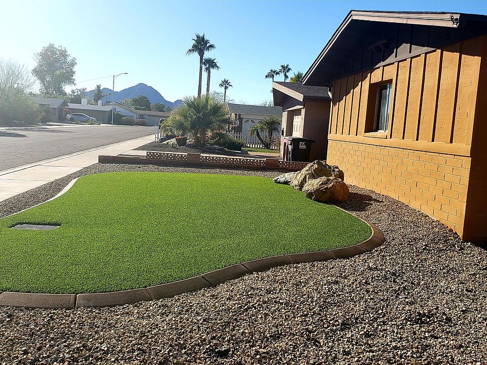 Interior features wood/laminate flooring throughout, ceiling fans, extra storage. Two full size bathrooms with double sinks. Indoor laundry room inc washer and dryer. Deep pool with in-water seating and umbrella holder. Large rear yard, lawn area and covered patio for outdoor dining. Garage with storage and work bench. Location offers convenient access to restaurants, shops, Loop 101, ASU.12 month minimum. Rent includes pool and front and back yard maintenance. No short-term rentals allowed 12 month minimum. $3000 security deposit