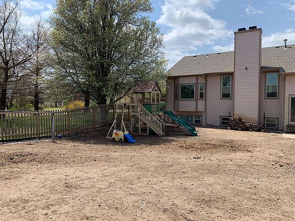 Ready for your Dream Home? Well this one is ready for you! This 4 bedroom 3 bath home sits on 1.84 acres and in a Cul-de-sac, close to Wichita. It has a 40-30 out building with concrete flooring and overhead lighting, full electric panel, double over head doors, with side entrance and 2 windows. FREE Water? Yes 2 wells with this one. One for the lawn sprinkler system and the other for the home. There are lots of mature trees and wild life to the area, that you can watch from the back porch. The back yard has just been seeded and will have beautiful green grass in the spring. The home is a custom built home, with Grand Ceiling heights, breakfast nook with bay windows, and a Formal Dining Open to the living rooms. There are 2 fireplaces, one on main floor and one in the family room in the basement. The Kitchen includes a large serving bar overlooking the living room and breakfast nook. Lots of cabinets and large pantry add to the kitchen space. A main floor laundry with cabinets and folding area. View out basement with family room and side game room space. Whole house filter system and appliances stay. Windows have a lifetime transferrable warranty. Must see this