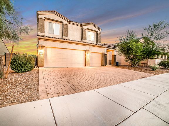 Looking for home? Look no further. This 4 bedroom, 3 bathroom, home will not disappoint. With granite counter tops, ceramic tile flooring downstairs, custom cabinetry, SS appliances, recessed lighting, premium fixtures, landscaped backyard, brick paver driveway, 3-car garage, all on solar power to lower your monthly energy bill! No credit check to transfer. You will be hard pressed to find another home like it. Close to shopping, dining, schooling, local parks, and easy access to I-10. Community rec center and pool are under construction and a Marana Regional Park is planned and will be built adjacent to the community. Come see it today before its gone!
