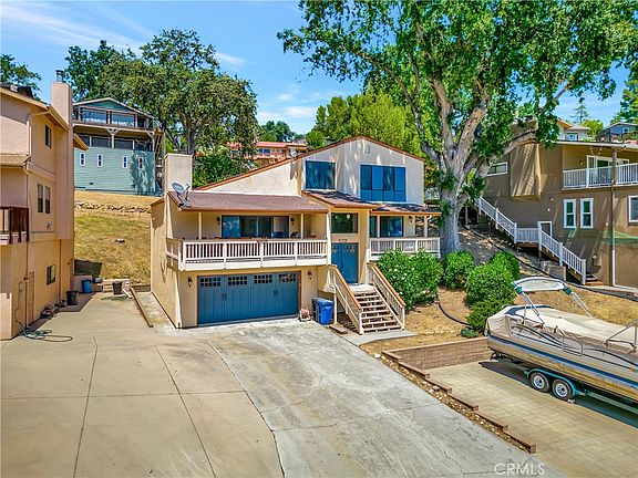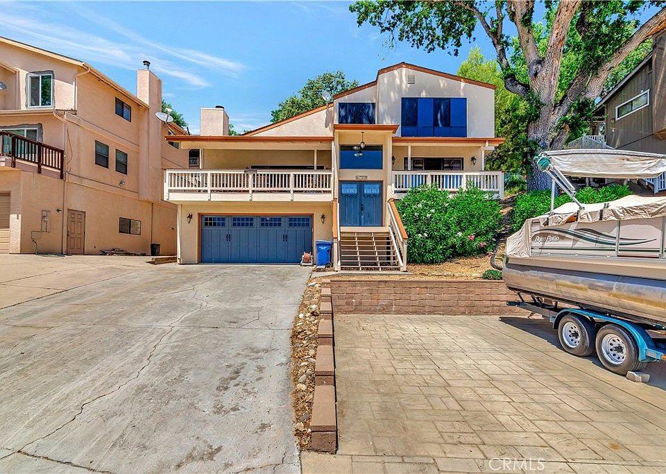 Discover luxury living in the prestigious gated community of Oak Shores with this stunning 2,650 sq ft home. The main level welcomes you with an open layout featuring a cozy living room boasting a fireplace, a gourmet kitchen adorned with granite counter tops, soft close cabinets and stainless steel appliances. Entertain effortlessly with a convenient wet bar, game room and two covered decks offering breathtaking views of Lake Nacimiento. Upstairs, retreat to 4 spacious bedrooms and 2 full bathrooms, providing comfort and privacy for the whole family. Downstairs, a laundry room, utility room and a 27' deep garage offer practical convenience. With ample parking for RVs and boats, this property is poised for outdoor adventures. Experience modern comfort with an all-electric house and custom blackout curtains throughout, ensuring both efficiency and elegance. The decorator and custom furniture and furnishings are negotiable and the buyer has first right of refusal on a private boat slip in the Oak Shores marina. Buy now and enjoy all of community amenities including the heated pool, clubhouse, two launch facilities, marina, miniature golf, dog park, playgrounds, pickleball courts and campground. Don't miss the opportunity to make this exquisite residence your own in the heart of Oak Shores, where luxury meets tranquility.