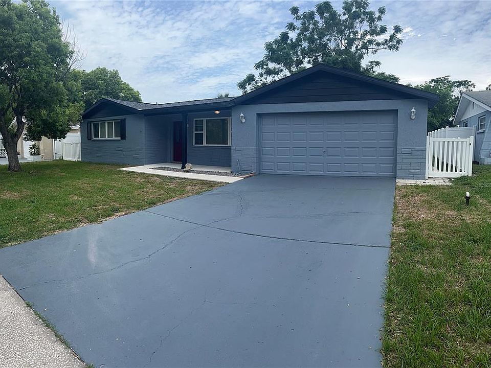 Lots of space! 2 BR 2 Ba 2 Car Garage plus large Living Room & Large Dining Room. In addition to the living space, there is a large glassed enclosed Florida room (this is not included in the SQ footage under a/c). New sod in front still growing in. Main roof 4 years old, Flat roof 1 year old. A/C replaced in 2021 (see 4 Point Inspection). Fresh exterior & interior paint. Large Garage with lots of storage capacity. Close by to shopping, restaurants, US -19, Suncoast Parkway. Central to the Greater Tampa Bay area! Lots to do & lots to see. Flood Zone X, No flood Insurance required at this time! Four Point Inspection completed this year & is included in attachments. All measurements are thought to be accurate but should be verified by buyer.