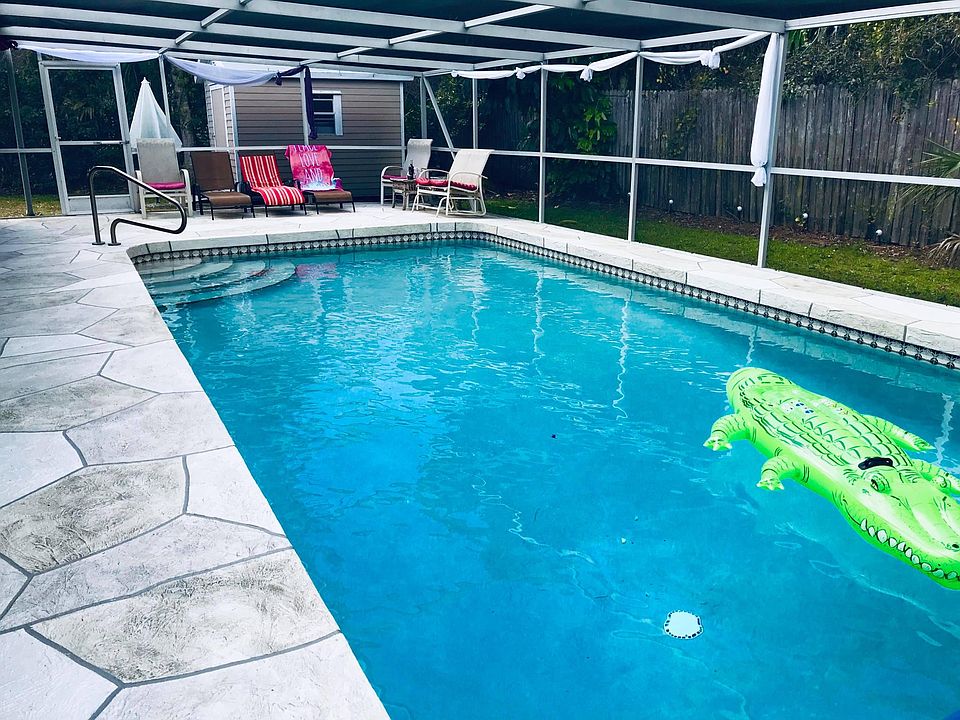 FROM MAY ONLY AVAILABLE FROM MAY to 01 APRIL 2023.to 31 October 2023 Our Smoke Free house is located 1 mile from South Venice Ferry. Access to the ferry, which takes you to the very popular private beach is complimentary with our rental. Ferry takes off every 30 minutes. Cozy ,newly remodeled,comfortable house in quiet neighborhood. House has been recently updated to make you feel comfortable and accommodate to your needs. Living Room and Master Bedroom just received a new furniture to make your stay enjoyable. Heated pool makes a swim enjoyable. Two out of the three bedrooms have TVs in them and queen size beds. Third bedroom has full bed with a pull out twin on the bottom. Living room has 60 inch tv for your viewing pleasure. Wireless less internet is provided. Caged big pool has nice open area for you to relax and enjoy the sun. Gas grill is provided. Fully equipped kitchen has absolutely everything you will ever need. Big table in dinning room seats 6 to make you feel comfortable during your meals. Shopping centers with restaurants, bars, grocery stores and gas stations are located minutes away from the house. Downtown Venice is 10 minutes away. Siesta Key is 30 minutes away. Enjoy your vacation in paradise! Hunting for shark teeth in Venice, Florida is one of the most rewarding, fun and unusual ways you could spend a vacation in Florida. The teeth you find can be used to make necklaces, bracelets, placed on display in your home or use however you see fit.Please call me only! Electric,Cable / Wi-Fi tenant pays