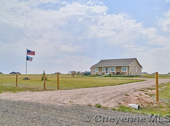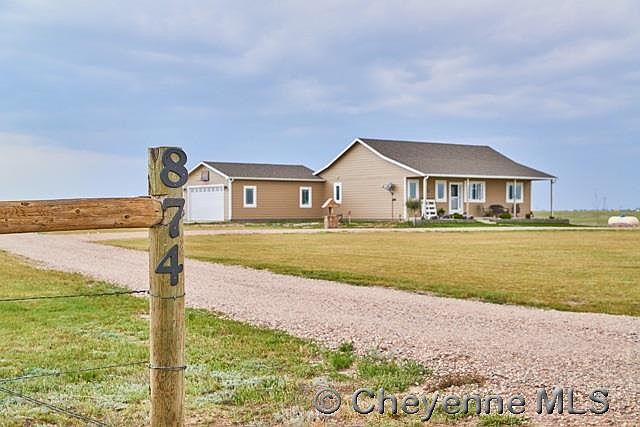 Open ranch-style floor plan featuring 5 bedrooms, 4 baths & 2+ car attached garage. Located in Riata Ranch Subdivision off Campstool Road, this tranquil property is situated on18.74 acres; minutes from town, schools, restaurants & recreation. Light, neutral decor throughout with fully finished basement. Wyoming living at its finest! Perfect 4-H Project Livestock Structures. Close-in rural location just off US Interstate 80 & Campstool Rd Exit. Head east on Campstool Road 8 miles and turn left on Arena Rd.