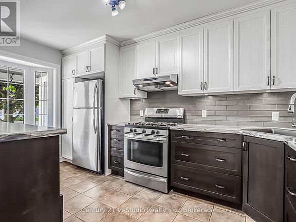 Welcome to 874 Arlington Street, Unit #14. Offering a flexible floor plan across three finished levels, this end-unit vacant and freshly painted bungaloft condo provides a great opportunity for low maintenance living. The covered front porch offers a sheltered space to enjoy the outdoors. Inside, the main floor features two bedrooms, including a primary bedroom with double closets and a private ensuite bathroom. A second full bathroom is conveniently located for guests. The living room is bright and welcoming, with a gas fireplace and patio doors leading to a private outdoor patio space with gated access to Arlington Street. Upstairs, the open loft area offers a versatile space ideal for a home office, gym, or playroom. The finished lower level includes a large family room, an additional bedroom, a powder room, laundry facilities, and storage space room. Residents have the added bonus of private gated access to the Rail Trail, perfect for walking, cycling, and enjoying the outdoors. The unit includes one designated parking space; however, the area is large enough to accommodate two smaller vehicles, provided they do not encroach on neighbour or visitor parking spaces. A rare offering in a desirable location. Contact your REALTOR today for more information and to arrange your private showing. (id:41440)