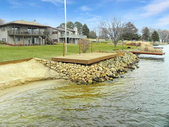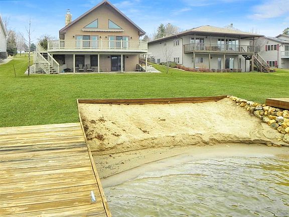 Lake Summerset waterfront home. Full southern exposure across wide expanse of the lake. Opposite Sunrise Beach. Deep water shoreline with newer cantilever pier, sand beach and party dock. Two bedrooms with third "office" on lower level. Super clean and ready for a summer's worth of fun. Vaulted living room ceiling with wood burning insert fireplace. Open concept. Freshly updated kitchen cabinets and counters. Main floor master bedroom suite with sauna in en-suite bath. Loft bedroom and sitting area. Family room on lake side walk out with attractive pine board panels. Attached 2.5 car garage only two steps to main floor of home. Flat lot to waterfront. Most furnishings negotiable. Guest baths on main and walk out level. Mudroom could be converted to main floor laundry. New Sunsetter Shade with remote. It's all here!
